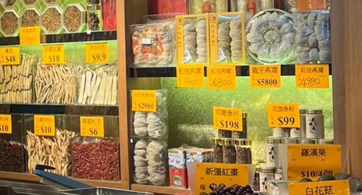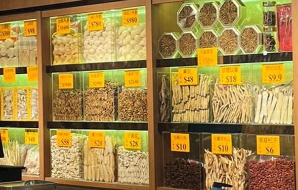燕窩、冬蟲夏草、花膠、海參、鮑魚、花旗參、海味乾貨、中藥材等